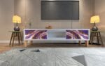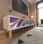 Enhance your living space with the Amethyst Elegance Cabinet. This designer cabinet, measuring 5 feet in length, 1.5 feet in width, and 2 feet in height, combines stunning aesthetics and practical storage, making it the perfect focal point for modern interiors.