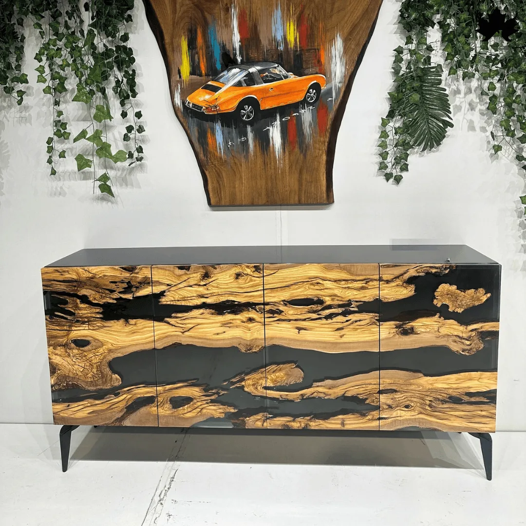 The Golden Elegance Artistic Resin Cabinet combines striking aesthetics with unparalleled functionality, making it a luxurious addition to any room. This Artistic Resin Cabinet piece features deep, flowing resin art, enveloped in rich golden hues set against a dramatic black backdrop, simulating natural wood grains and textures. The golden swirls and accents catch the light, adding a touch of glamour and sophistication. It’s not just beautiful; it’s also built to last and provides ample storage space, making it as practical as it is stylish.