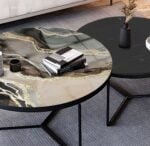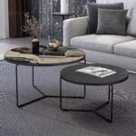 - Dynamic Duo: One table showcases an abstract art finish, while the other flaunts a timeless black marble top.