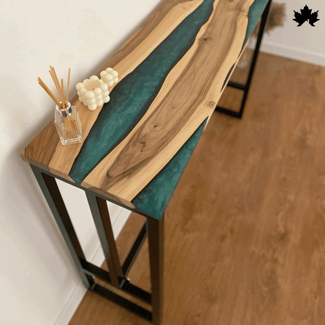 Perfect for modern interiors, contemporary living rooms, or as an elegant entryway table, the Emerald River Console Table is a unique statement piece that brings a touch of nature into your space. Its versatile design complements both rustic and minimalist decor, making it a perfect fit for any style.
