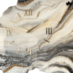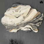 The Golden Drift Resin Wall Clock is an exquisite fusion of natural elegance and modern artistry, combining smooth white and black resin with shimmering gold accents. The clock’s flowing design mimics marble veins, enhanced by sparkling gold details and a polished finish. The bold Roman numerals in gold provide a classic touch, making this timepiece both functional and stylish.