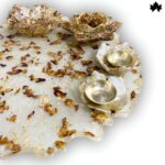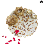 Step into a world of elegance with the Golden Petal Majesty Pooja Thali, a 12-inch masterpiece that redefines luxury and tradition. This exclusive Thali is adorned with meticulously engraved natural rose petals, creating a timeless design that is both unique and captivating. Accentuated with shimmering gold foils, the Thali radiates opulence, making it the perfect choice for sacred ceremonies such as Rakhi, Diwali, and other festive occasions. The expansive 12-inch diameter offers ample space for all your Pooja essentials, combining both functionality and aesthetic appeal. The Golden Petal Majesty Thali is more than just a ritual item; it is a statement piece that enhances the beauty of your traditions.”