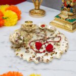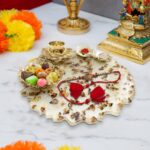 Golden Petal Majesty Pooja Thali – Perfect for Rakhi, Diwali & Festive Ceremonies