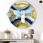 The Golden Waves Luxurious Home Clock by Fankaarlok is a timeless masterpiece, featuring mesmerizing layers of oceanic blue and radiant gold. Handcrafted to perfection, this clock seamlessly blends art and utility, creating a sophisticated focal point for your interiors.