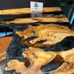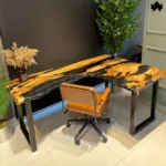 The Lava Flow Executive Desk is part of Fankaarlok’s Signature Series, crafted to bring the raw beauty of nature into the sophisticated workspace. Featuring an eye-catching black resin stream that mimics a lava flow, set against vibrant, golden wood grains, this lava flow executive desk stands as a testament to unique craftsmanship and style.