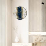 The Midnight Cascade Living Room Clock by Fankaarlok is a testament to timeless elegance and artistic craftsmanship. Its striking design combines a deep navy resin center with textured white and shimmering gold borders, creating the perfect cascade effect reminiscent of a serene nightscape.