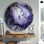 The Mystic Amethyst Geode Luxurious Artistic Wall Clock by Fankaarlok is a visual masterpiece that merges functionality with stunning decor. Inspired by the enchanting beauty of geodes, this clock features a rich amethyst resin design accented with glistening crystals and intricate details.