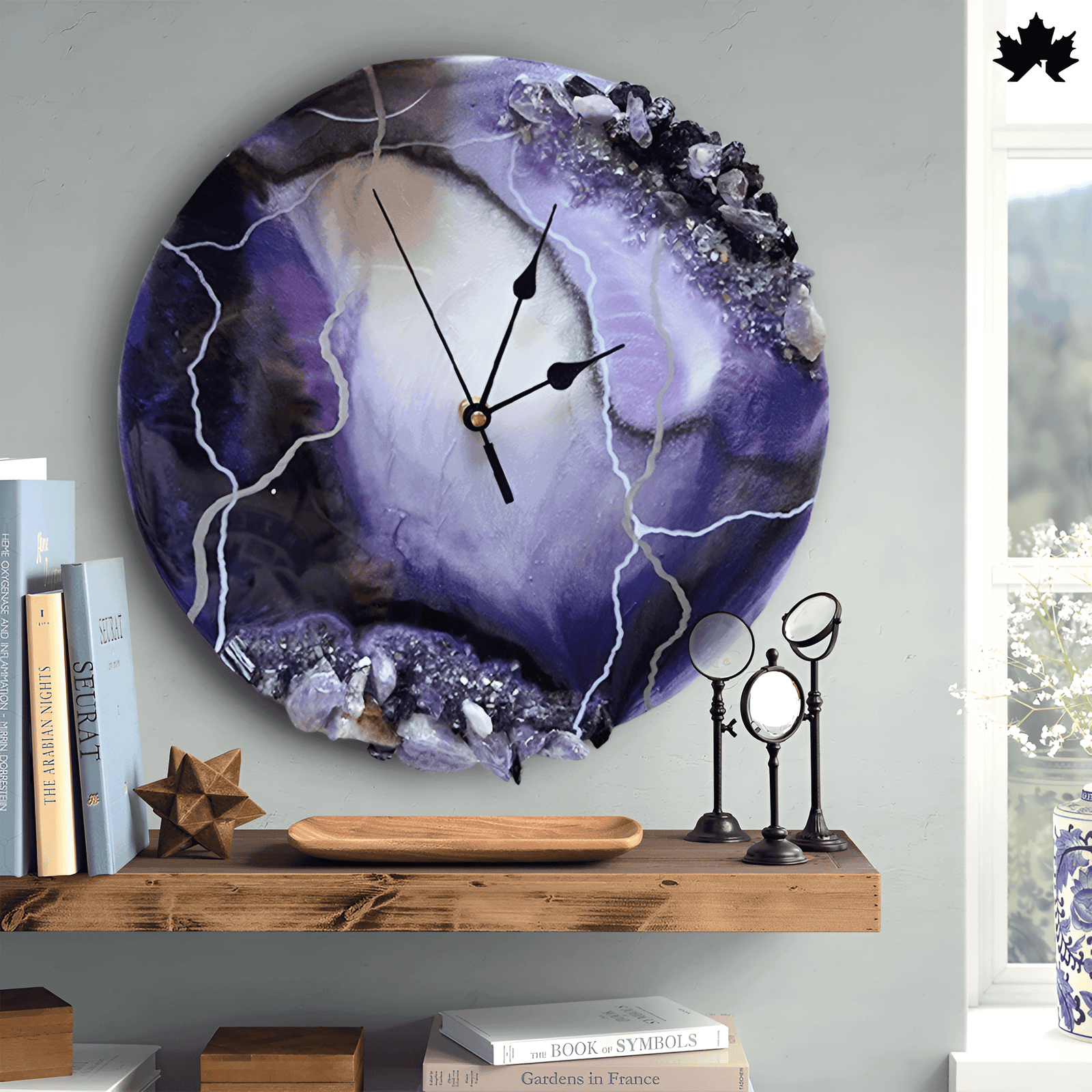 Mystic Amethyst Geode : Luxurious Artistic Wall Clock Key Features: