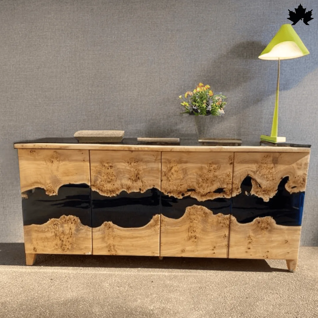 Midnight Waves – Natural Burl Wood & Resin Cabinet | Fankaarlok