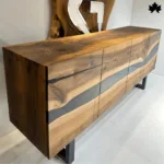 The Rippling Elegance Oak Resin Cabinet merges the warmth of natural oak with the fluidity of a dark resin wave. This artfully designed Oak Resin Cabinet piece captures the essence of a serene riverscape, adding a sophisticated yet practical element to your home or office. With ample storage and a striking appearance, this cabinet serves both functionality and style.