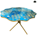 The Ocean Bliss – Artistic Deco Resin Masterpiece Coffee Table is a mesmerizing blend of bold artistry and functional design. Featuring a unique scalloped resin top in deep ocean blue, this table is adorned with intricate golden patterns and delicate floral accents. The sturdy tripod base in metallic gold complements the table’s luxurious aesthetic, making it an ideal centerpiece for any room. Perfect for modern, eclectic, or bohemian interiors, this handcrafted masterpiece will be a conversation starter in any setting.