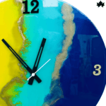 Brighten up your space with the vibrant Ocean Meets Sun Colorful Designer Clock, a masterpiece of bold colors and artistic design for modern interiors.
