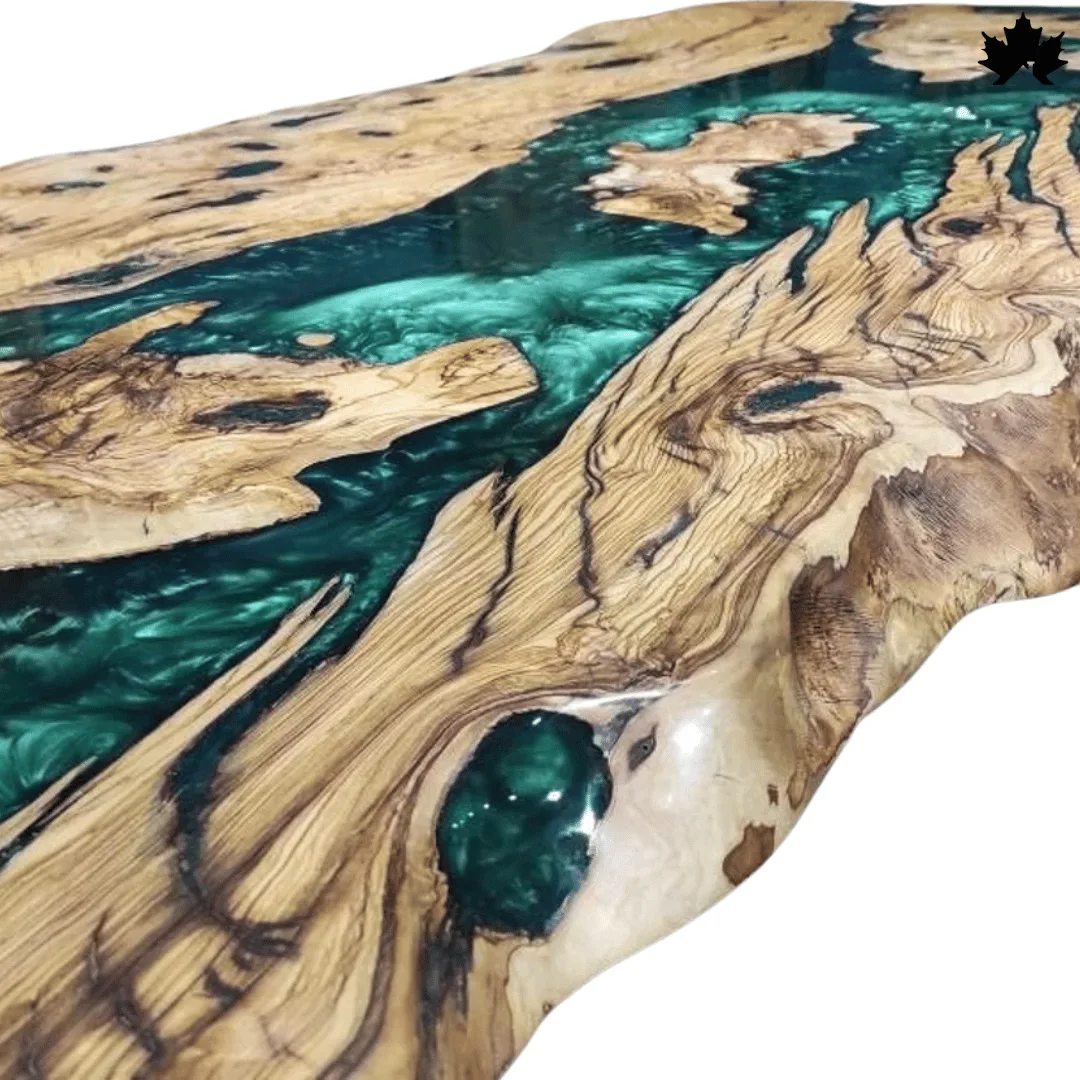 Sculpt your space with the fluid beauty of the Riverbend Resin Art Table, a perfect fusion of organic wood and flowing resin.