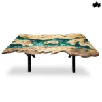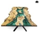 Embrace the serenity of nature with Fankaarlok’s Riverbend Resin Art Table. This beautifully crafted riverbend resin art table features a unique, river-like resin flow set between panels of natural wood. The rich, vibrant hues of turquoise blend seamlessly with the rustic wood, creating a visual gateway to nature’s wonders right in your living or work space.