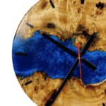 The River Blue Resin Wall Clock is a captivating blend of nature and artistry, offering a striking design that combines the beauty of natural wood with the vibrant essence of blue resin. The resin flow resembles a river, creating an elegant, fluid contrast against the rich wood tones. The minimalist black clock hands and red second hand provide a modern and functional touch to this statement piece.