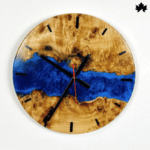 Transform your space with the River Blue Resin Wall Clock, featuring a beautiful combination of natural wood and vibrant blue resin, perfect for adding a unique, artistic touch to any room.
