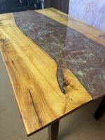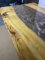 - Unique Material Combination: Solid wood with resin inlay for a smooth, glossy surface that’s easy to clean.
