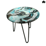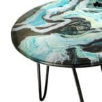 - Dynamic Resin Top: Each table top is uniquely hand-poured, featuring swirling patterns of blue and green that beautifully mimic oceanic currents.